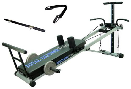 Total Trainer TT2500P Pilates home gym. Complete body workout system designed to deliver results. Perform over 60 different exercises for the upper, mid and lower body. Tone-up, lose weight or build muscle with just one piece of equipment. The Total Trainer Pilates combines the original workout system with a new Pilates program, making this the most versatile piece of exercise equipment available. Check out these great features:Delivered fully Assembled - ready to UseFolds for storage in seconds Dual Bearing Glide Board Rollers Transportation Wheels 76 Resistance Levels 2" High Density Foam Glide Board Pull-up/Push-up Bar Power Bar to add extra weight Pilates Toe Bar Ab Crunch Strap Sit-up/Leg Curl Strap NEW Press Bar / Arm Curl Bar Double Leg Cuff & Rope System Shoulder Pads Advanced Double-Pulley System 4 TPR Resistance Bands for optimum loading Pilates Training Total Trainer DVD included Pilates Training Manual - 32 Pilates Exercises Special Pilates Accessories Included 10 incline Levels Total Trainer Manual - 60 Exercises Total Trainer Accessories Included Workout Charts Dimensions Open: 20" x 94" x 48" Dimensions Folded: 20" x 14" x 48" Glide Board Dimensions: 14" x 42" Maximum user weight: 125kgs